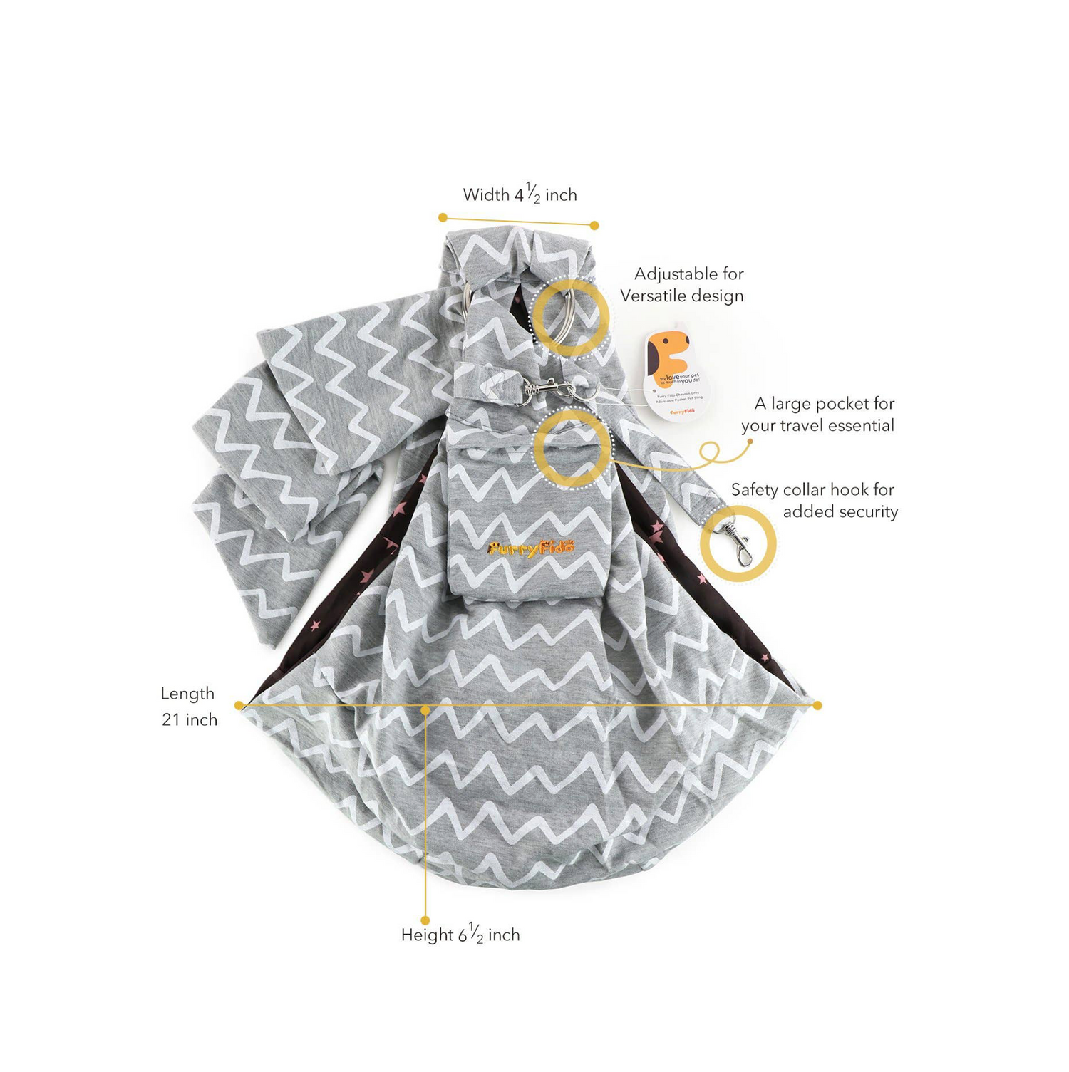 Furry Fido Adjustable Pocket Pet Sling - Chevron Grey